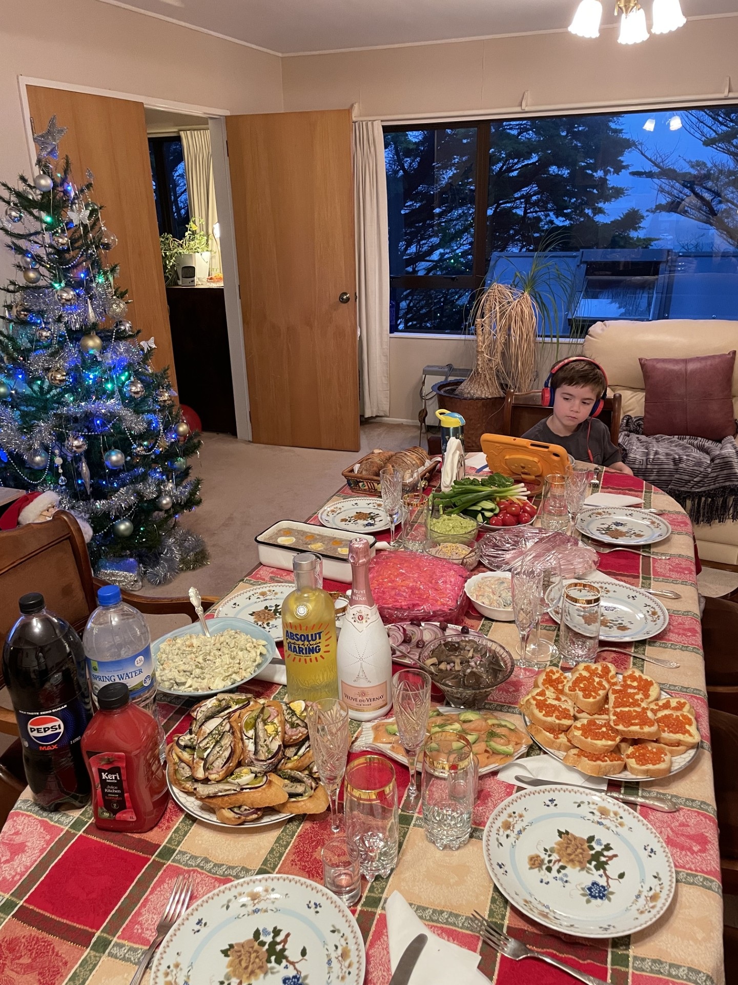 Пацаны! У меня уже почти 21.30. Уже пора садиться провожать старый год. Каждый год боюсь сесть рано, что бы не отрубиться когда придёт Новый. Но всё уже готово, жена опять превзошла себя. Не знаю как мы всё это будем потом доедать. Это ещё горячего нет на столе, и сладкого...
