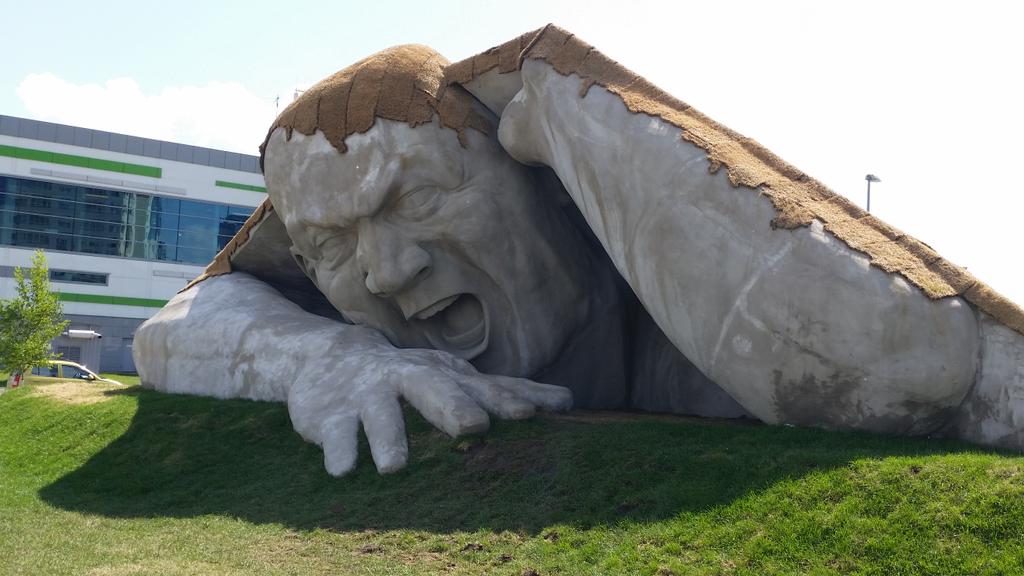 подарок какого то зарубежного скульптора .я когда по мещерке ехал .его первый раз увидел чуть в аварию не попал .